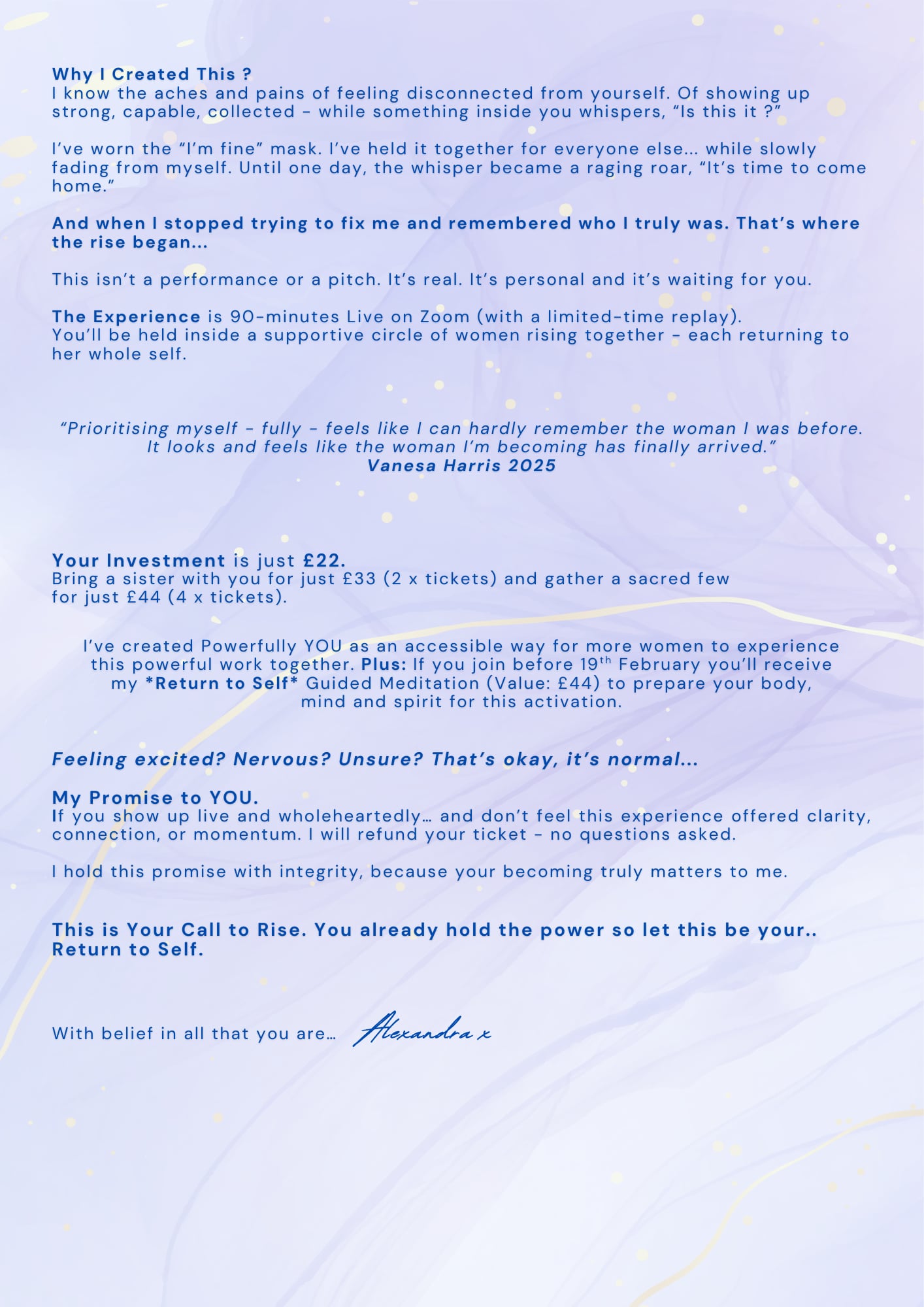 “I learned what it is to be me for myself – authentic, powerful – without the need for validation or approval.”